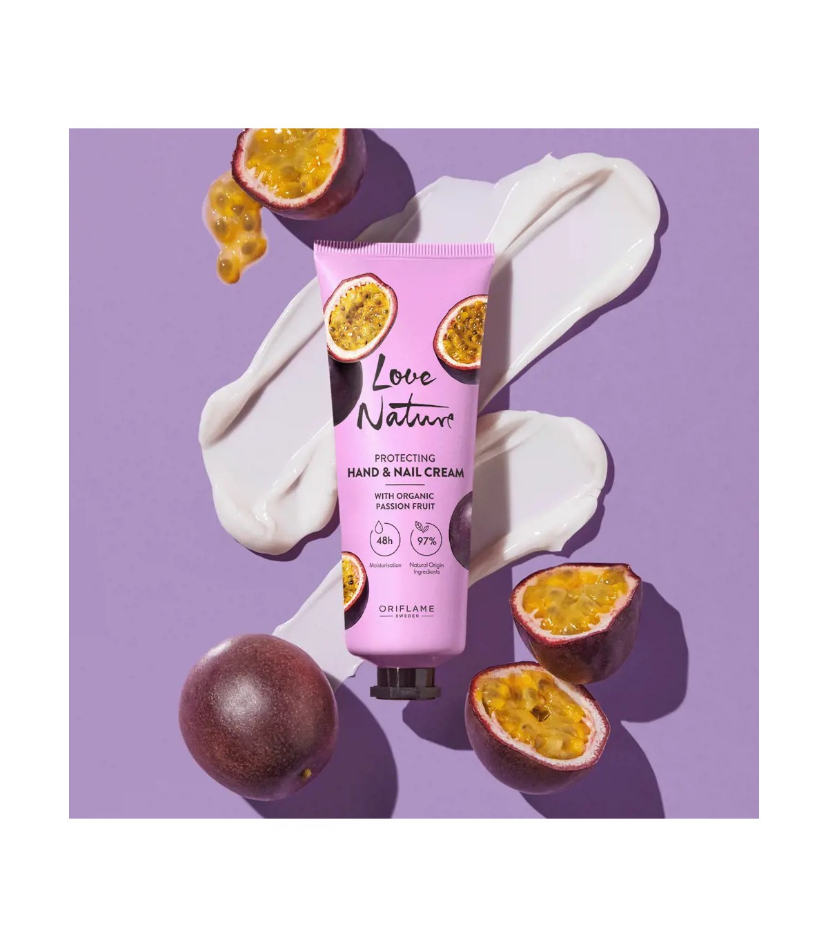 Oriflame Love Nature — کرم دست و ناخن با عصاره ارگانیک پشن فروت، جذب سریع و تغذیهکننده ناخنها.